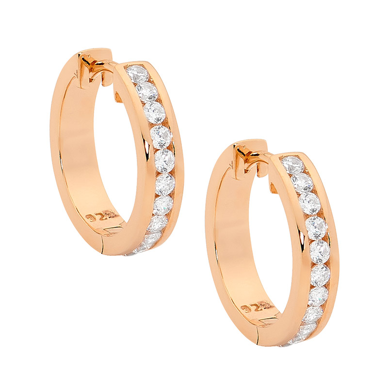 Channel Set Hoop Earrings with 18ct Rose Gold Plating