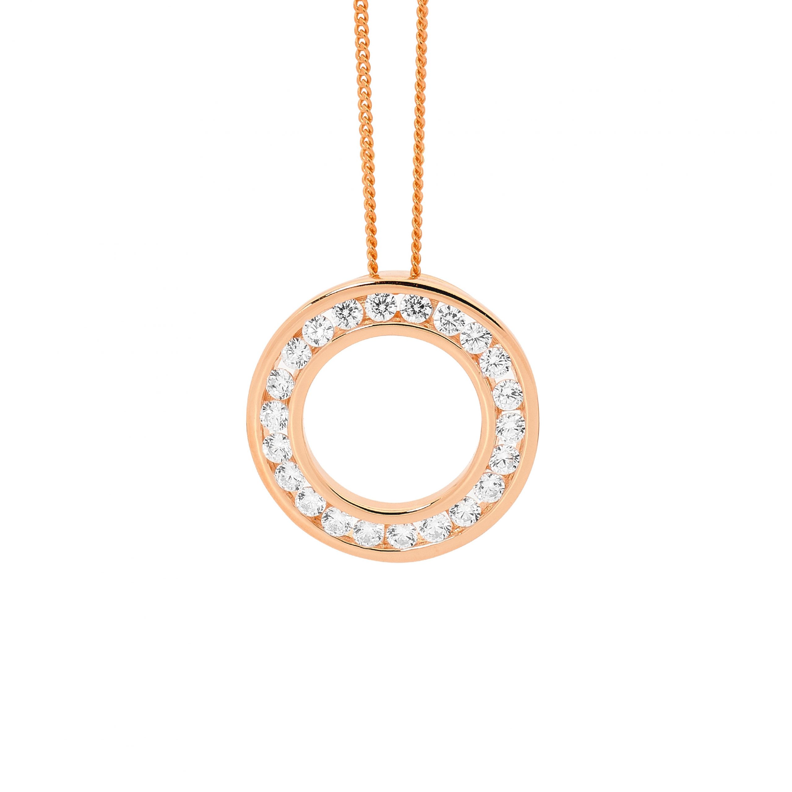 Channel Set Circle Pendant with 18ct Rose Gold Plating