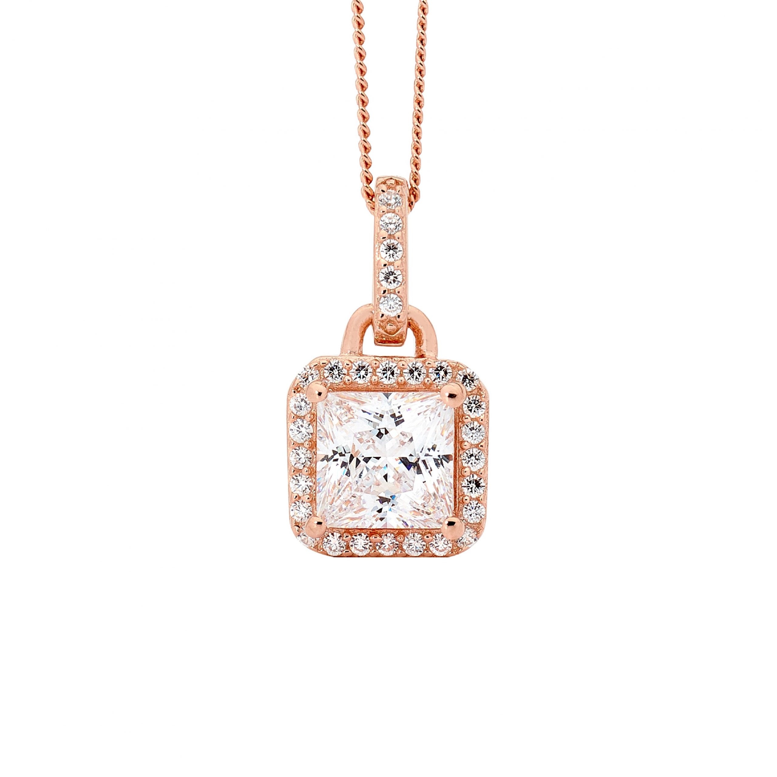 Princess Cut Pendant with 18ct Rose Gold Plating